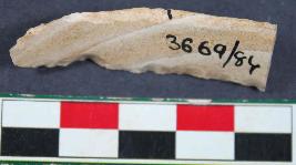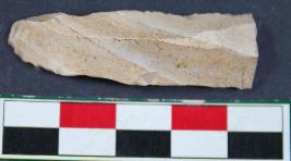 | Description / विवरण | Chert blade showing thick broad parallel sided,one end truncated, trapezi in section and sharp cutting edges. Its surface is smooth. |