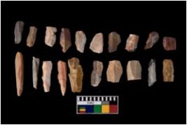 | Description / विवरण | There are n 20 blades chipped from chert. All the blades show very fine flaking percussions on their surface. They do not show any sign of retouchings. Weathering or damage is also not visible. |