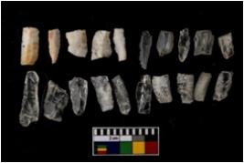 | Description / विवरण | There are n 20 blades chipped from quartz. They are medium-sized microliths mostly with a single flake scar. They have no retouchings but show a little damage along the edges. |
