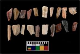 | Description / विवरण | There are n 20 microliths out of which 12 are Blades and 8 are Debitages. The blades are in average working condition with a few of them having retouchings along the edges. The edges are not sharp but show no visible sign of damage. |