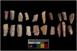 | Description / विवरण | There aree n 20 microliths with 8 Blades and 12 Debitages.The blades show small retouchings along the edges and have been chiiped off in one flaking. Some of them show visible signs of damage on their surface. |