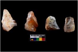 | Description / विवरण | Four worked utilised cores from which blades removed from almost all the sides. |