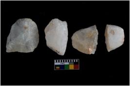 | Description / विवरण | There are n-4 of cores. All are made up of Quartz. All of them are intact fully fluted cores without any trace of crested ridge flakes. |