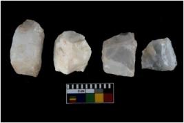 | Description / विवरण | There are n-4 of cores. All are made up of Quartz. All of them are intact fully fluted cores without any trace of crested ridge flakes. |