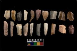 | Description / विवरण | There are n 20 objects out of which 13 are Blades and the rest are debitages. A very few of the also appear as points. The blades are in good working condition with very less or no retouchings along the edges. The surfaces show single to multipple flake scars. |