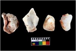| Description / विवरण | Four utilised worked cores with sharp edges. Flakes have been removed from few sides. |