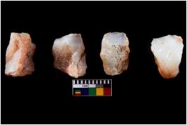 | Description / विवरण | Four worked utilised cores from which blades removed from almost all the sides. |