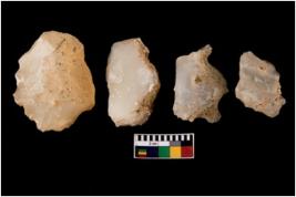 | Description / विवरण | There are n-4 intact flake cores. There are multi directional irregular scar pattern on both dorsal and ventral face of the cores. |