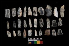 | Description / विवरण | There are n 30 objects of which 4 appear as blades bladelets and the rest debitages. The blades are uneven and have uneven flaking, which is singular, along their surface. There are no visible retouchings, through the blades show signs of weathering. |