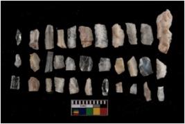 | Description / विवरण | There are n 33 objects, of which 11 are chert, and the rest are quartz. There are 9 blades and the rest appear as debitages. The blades are in average working condition with blunt edges. The edges do not have any retouchings. The blades mostly have a singular or double flake scar along the surface. There are less signs of damage along the surface. |