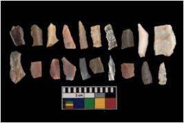 | Description / विवरण | There are n 20 objects of which 4 are quartz and 16 are chert. Out of these, 11 can be characterized as blades and the rest debitages. The blades are in average working condition. Some of them have small retouchings and some of the smooth surface along the edges. There are single to double flake scars on their surface. A few of them have just one flake scar on the surface and then they have retouching along the working end; there is only one working end. There are no visible signs of damage. |