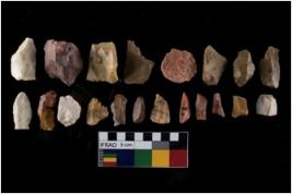 | Description / विवरण | There are n-20 of intact flake cores made up of Chert. All of them are crested ridge flakes. Some of them have bulge of percussion and few are retouched. |