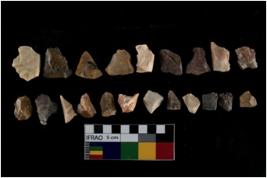 | Description / विवरण | There are n-20 of intact flake cores made up of Chert. Some of them have bulge of percussion, some are flat flakes and few are retouched. |