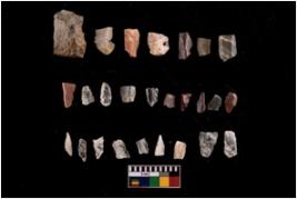 | Description / विवरण | There are n 26 objects of which 14 are chert and 13 are quartz, out of which, 12 appear as blades and there are a few points as well. The rest appear as debitages. The blades are, on an average, in a poor working condition. There are very less or no retouchings. Also, the edges appear somewhat damaged and blunit. There are visible signs of weathering. |