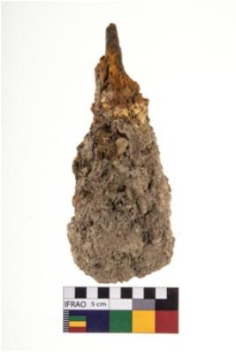 | Description / विवरण | A partially broken specimen of iron adze. It is convex shaped with partially broken end. |