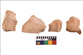 | Description / विवरण | Four worked utilised flakes. Most of them are uneven with sharp edges. |
