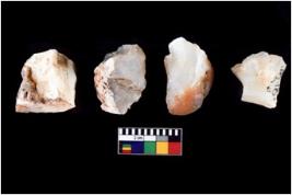 | Description / विवरण | Four worked utilised cores from which blades removed from almost all the sides. |