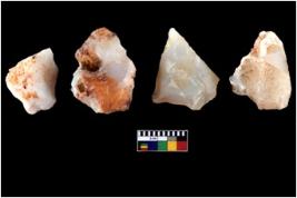 | Description / विवरण | Four utilised worked cores with sharp edges. Some of them are tapering at one end. Removal of flakes from few sides. |