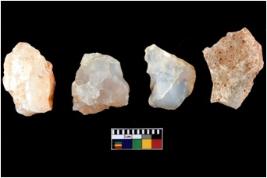 | Description / विवरण | Four utilised worked cores with sharp edges. Some of them are tapering at one end. Removal of flakes from few sides. |