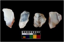 | Description / विवरण | Four worked utilised cores from which blades removed from almost all the sides. |