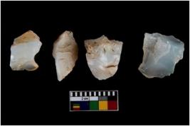 | Description / विवरण | Four worked utilised cores from which blades removed from almost all the sides. |