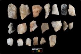 | Description / विवरण | There are 20 flakes.It comprises of shapes like the crescent, arc shape, conical and levallois type of flakes. Ridge lines are prominent in few. |