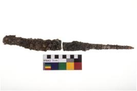 | Description / विवरण | A specimen of an iron nail having rounded top and tapering towards the end. |