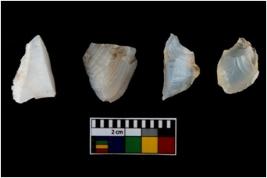 | Description / विवरण | Four worked utilised cores from which blades removed from almost all the sides. |