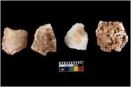 | Description / विवरण | Four utilised worked cores with sharp edges. Some of them are tapering at one end. Removal of flakes from few sides. |