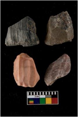| Description / विवरण | There are n-4 of cores. Out of them 1 is made up of Quartz and 3 are made up of Chert. All of them are intact fully fluted cores without any trace of crested ridge flakes. |