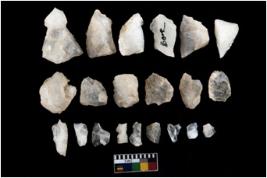 | Description / विवरण | There are 20 flakes.It comprises of shapes like the crescent, arc shape, conical and levallois type of flakes.Two has tanged point. |