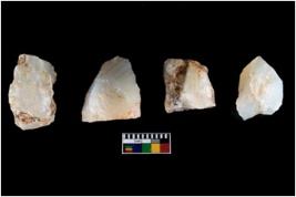 | Description / विवरण | Four utilised worked cores with sharp edges. Some of them are tapering at one end. Removal of flakes from few sides. |