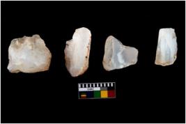 | Description / विवरण | Four worked utilized cores from which blades removed from almost all the sides. |
