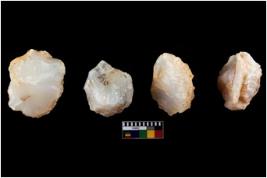 | Description / विवरण | Four worked utilized cores from which blades removed from almost all the sides. |