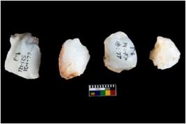 | Description / विवरण | Four utilised worked cores with sharp edges. Some of them are tapering at one end. Removal of flakes from few sides. |