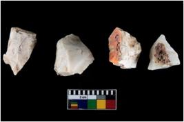 | Description / विवरण | Four utilised worked cores with sharp edges. Some of them are tapering at one end. Removal of flakes from few sides. |