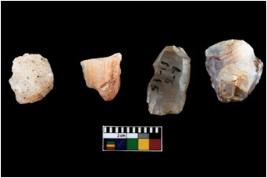 | Description / विवरण | Four worked utilized cores from which blades removed from almost all the sides. |