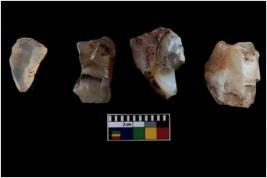 | Description / विवरण | Four worked utilized cores from which blades removed from almost all the sides. |