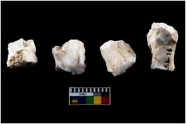 | Description / विवरण | Four utilised worked cores with sharp edges. Some of them are tapering at one end. Removal of flakes from few sides. |