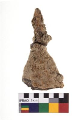| Description / विवरण | A speciamen of Adze. It consists of a pointed tang splaying outward into a triangle, the flat base. It is convex shaped. |