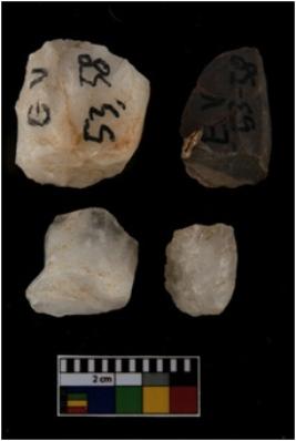 | Description / विवरण | There are n-4 of cores. Out of them 3 are made up of Quartz and 1 is made up of Chert. All of them are intact fully fluted cores without any trace of crested ridge flakes. |