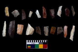 | Description / विवरण | There are n-20 of microliths, among them 3 are quartz, and 17 are of chert. Some of them are partially broken. They show variation in colour, size and shape. Some of them are blunted back blades, points, triangles, trapezes, crescent and truncated blades. |