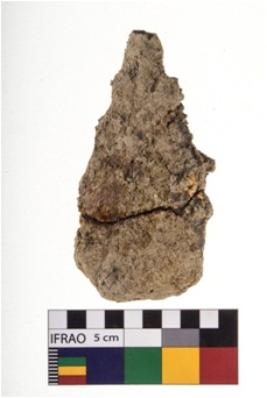 | Description / विवरण | A specimen of iron adze. It is convex shaped with working edge. |