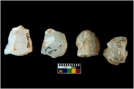 | Description / विवरण | Four worked utilised cores. Flakes removed from few sides. Most of them are uneven and few are tapering at one end. |