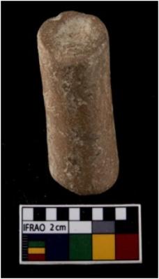 | Description / विवरण | A complete specimen of a medium size terracotta cylindrical object with elongated body, smooth and polished surface, slightly tapering sides and flat end. It is devoid any kind of wash. It is fine in fabric and well fired, red ware. It is having a slight depression at top surface. Probably a stopper. |