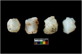 | Description / विवरण | Four worked utilised cores. Flakes removed from few sides. Most of them are uneven and few are tapering at one end. |