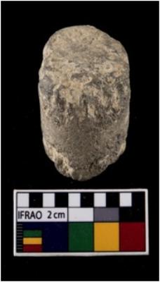 | Description / विवरण | A complete specimen of a medium size terracotta cylindrical object with short body, smooth surface and flat end. It is devoid of any kind of wash. It is having a groove design at base and apex round the body. It is grey ware, fine in fabric and well fired. Probably a stopper. |