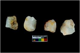 | Description / विवरण | Four worked utilised cores. Flakes removed from few sides. Most of them are uneven and few are tapering at one end. |