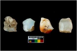 | Description / विवरण | Four worked utilised cores. Flakes removed from few sides. Most of them are uneven and few are tapering at one end. |