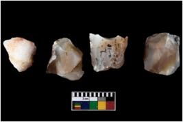 | Description / विवरण | Four worked utilised cores from which blades removed from almost all the sides. |